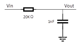 在本实验中,采用的是一阶RC低通滤波器来进行滤波,电路图如图所示。